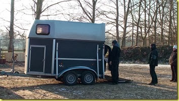 Hier wird “Tirilu” ausgeladen, eine junge Fuchsstute. Sie ist Manuels Berittpferd.