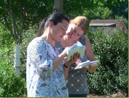 | Pauline und Karin freuen sich. Sie haben den nächsten Hinweis gefunden. |