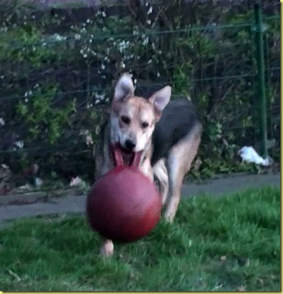 | Auf der Jagd nach Schmetterlingen. Apollo wird immer geschickter und springgewaltiger. (Mai 2012) |