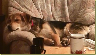 | Eine halbe Stunde Kaffeetrinken bei Papa. Die Hunde haben die Zeit auf ihre Weise “genutzt”! (März 2012) |